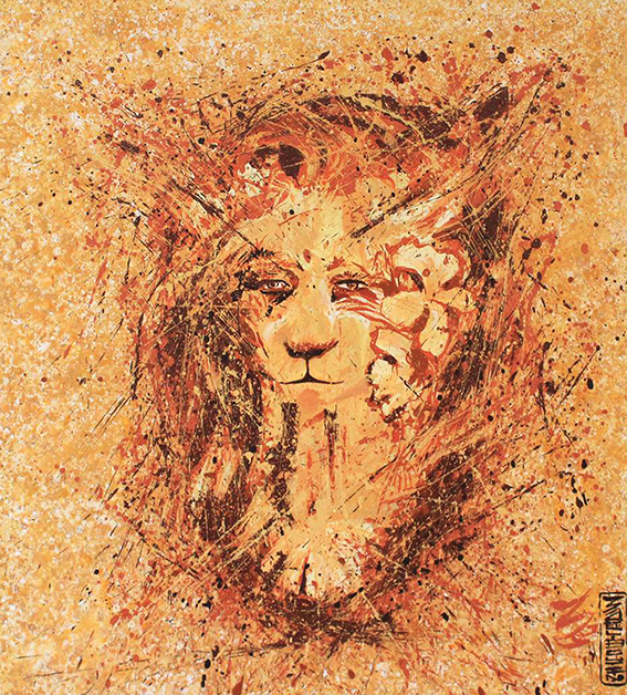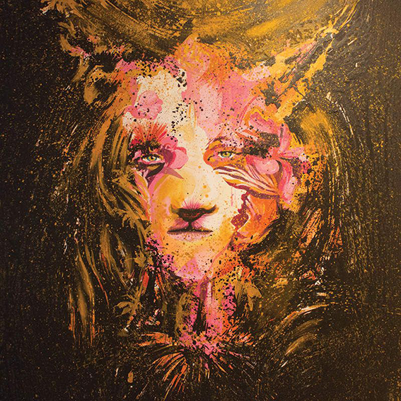Techniques mixtes sur toile (dripping, acrylique, encres, poudre d’or)