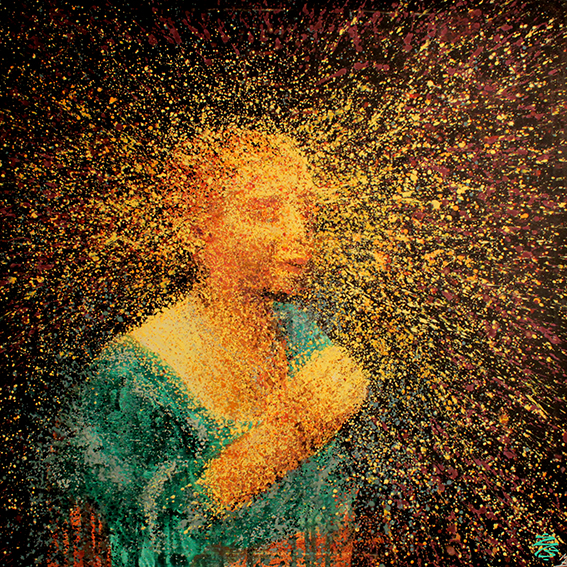 75 x 75 x 2 cm – dripping & techniques mixtes sur toile (encres, eau, gouache)